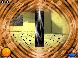 Here you see the view of the first level (house of player) with the inventory screen overlayed on top of that. This is an older version. The screen above shows how it looks now. |